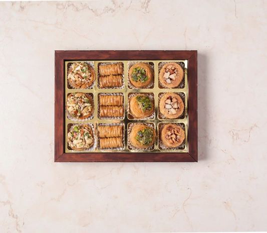 Ligneous Tray Hamper Mediterranean Baklava Sweets & Filled/ Coated Dates